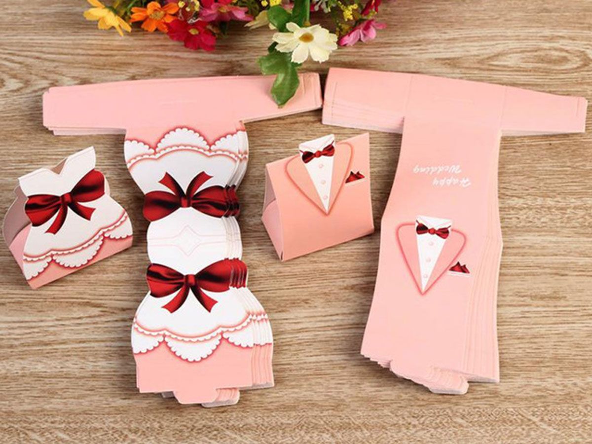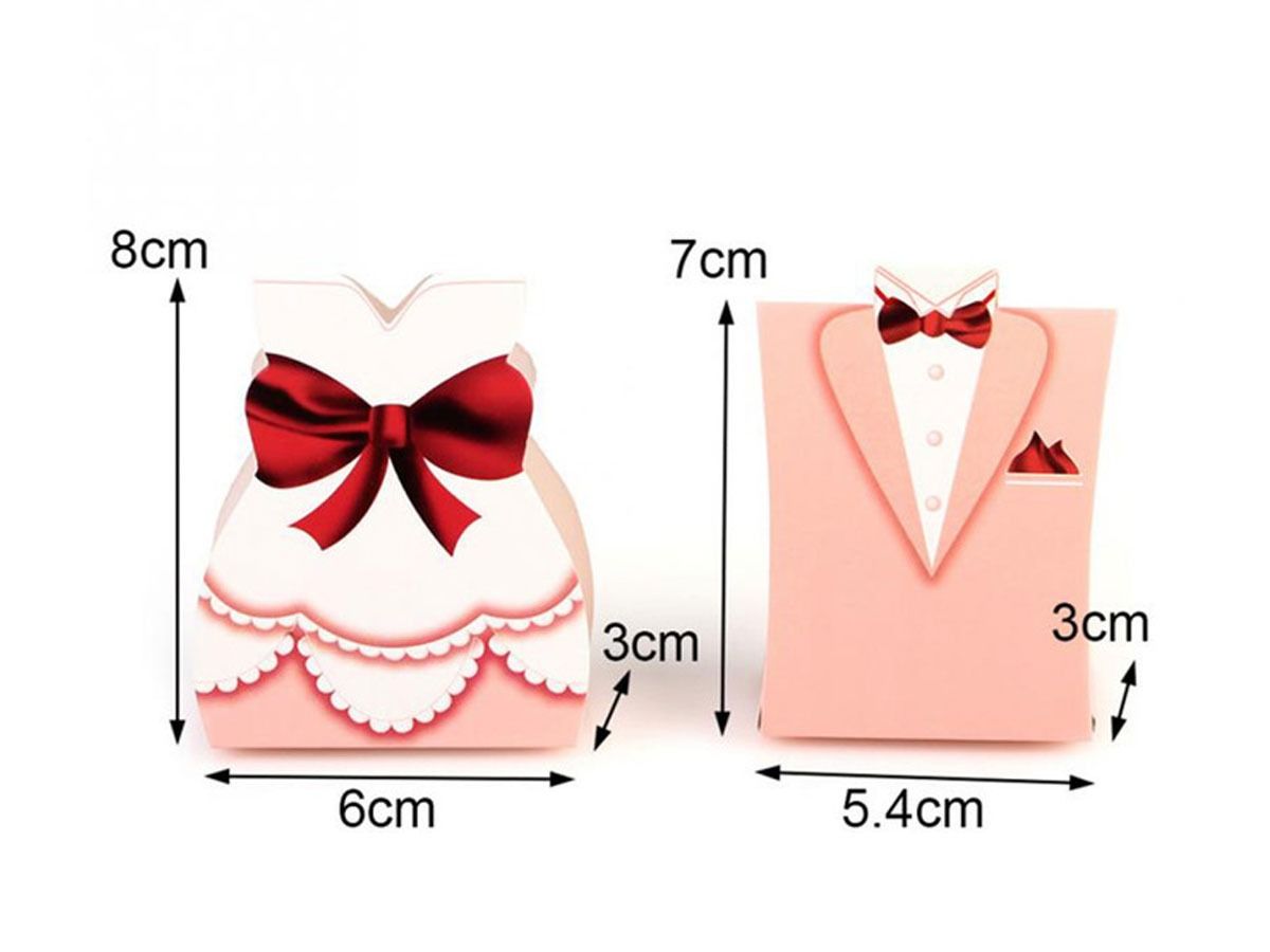 Bring a smile to your guests’ faces with these adorable wedding favour boxes dressed for the occasion! Featuring a charming bride in her wedding gown and a dapper groom in a classic tuxedo, these little boxes are perfect for filling with sweets, chocolates, or tiny treats.